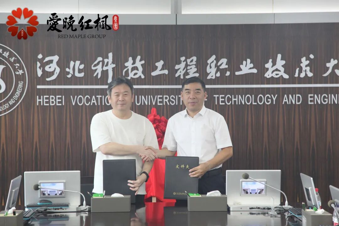9月3日,河北科技工程职业技术大学与河北爱晚红枫集团校企合作签约仪式隆重举行。 签约仪式 河北科技工程职业技术大学副校长李贤彬、科技处处长王傲冰、人工智能学院院长冯磊、人工智能学院副院长张小志、人工智能学院实训中心主任徐振立及河北爱晚红枫集团董事长张福伟、副总经理赵春梅出席签约仪式。 签约仪式上,河北科技工程职业技术大学副校长李贤彬表示,学校自2021年升本以来,本科生占比大幅提升,多个专业紧密对接社会需求。学校高度重视人工智能等重点领域建设,持续加强师资引进与培养,不断夯实教学与科研基础。未来,学校将以务实作风深化校企合作,通过合作切实提升教学质量与教师实践能力,同时助力企业研发生产,真正实现校企资源共享、互利共赢,扎实推动各项合作事项落地见效。 河北爱晚红枫集团董事长张福伟强调,集团深耕医康养领域十八年,以科技创新驱动康养服务升级,构建 “智慧康养” 核心战略布局,落地多套智慧系统推动康养服务数字化、智能化转型。此次与河北科技工程职业技术大学合作,共建 “智慧康养技术创新中心”,将围绕多领域深度合作,未来还计划联合顶尖高校打造相关研究与转化基地,为智慧康养产业发展提供可复制样本,助力中国智慧康养事业发展。 双方签署校企战略合作协议 校企共建“智慧康养技术创新中心”揭牌 此次与河北科技工程职业技术大学的签约,是河北爱晚红枫集团在智慧康养领域深化产教融合的关键举措。通过与高校共建 “智慧康养技术创新中心”,将充分发挥集团在行业实践中的优势,结合高校的科研与人才资源,在技术研发、人才培养等方面开展深度合作,加速智慧康养成果转化,为集团发展注入新活力,也为推动中国智慧康养产业高质量发展贡献力量。